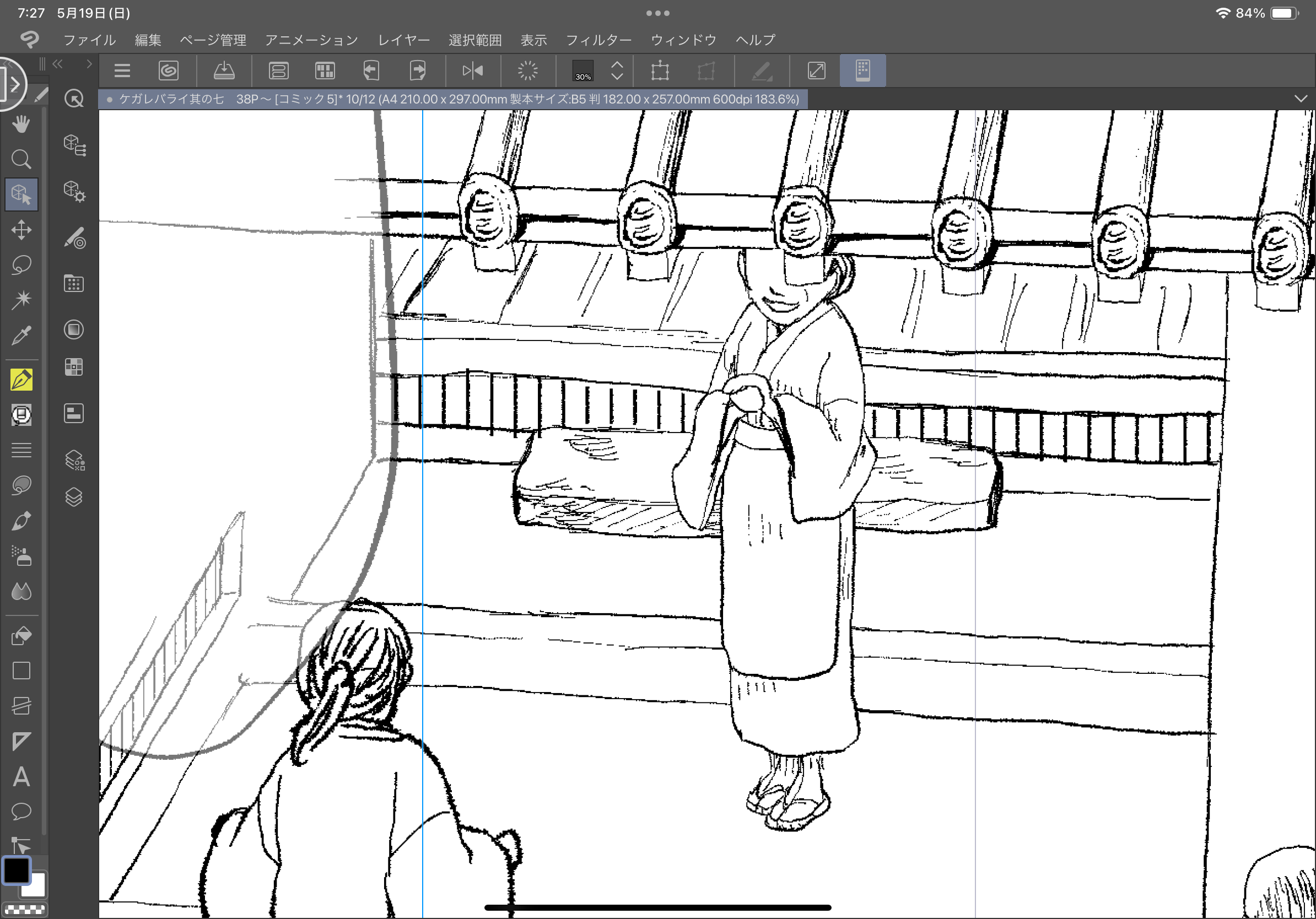背景とモブなどが大変なところを先に終わらせました。頑張った!残り4P中真ん中の2Pがペン入れ終わってる感じ。とはいえ背景大変なところがまだちょっとあるので進捗的には35%かな……。6月中に4Pまとめてアップかな~と思っています。気長に気長に。
