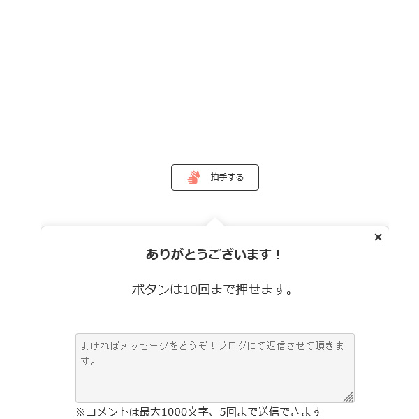 去年書いたこの記事のおそらく「いいねボタンを拍手風にしました。」のあたりに検索で辿り着く方がいらっしゃると思われ良く拍手頂いてたので、こういうのは更新のついでじゃなく独立した記事にしておいたほうがいいかなと思って書いておきます。