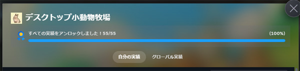 デスクトップ小動物牧場」トロコンしましたわ~。プレイ時間40時間くらいだった。もう一個デスクトップ放置ゲー買ってあるのだけど、自分は放置ゲーが放置できないことを強く自覚したのでやるかどうか迷うな。