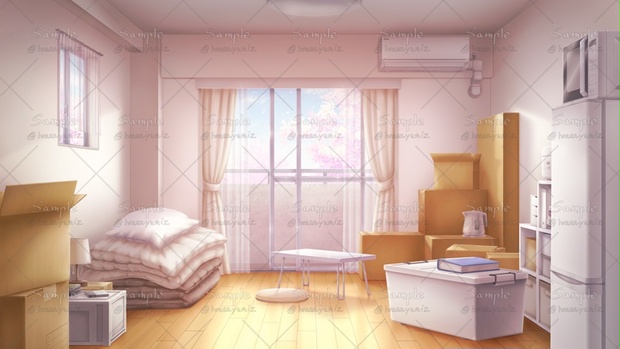新作背景イラスト素材「間に合わせの新生活」をBOOTHおよび各サイトにて公開しました!